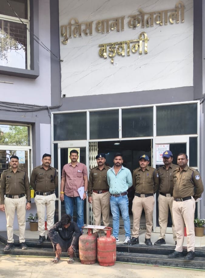 यह कि पुलिस थाना बडवानी पर विगत कई दिनो से चोरी की घटना घटित हो रही थी वारदातो को गंभीरता से लेते हुए  प्रभारी पुलिस अधीक्षक श्री धीरज बब्बर के द्वारा एसडीओपी दिनेशसिंह चौहान के निर्देशन मे थाना प्रभारी निरीक्षक बलजीतसिंह बिसेन के नेत्रत्व मे थाना कोतवाली की टीम का गठन किया गया । टीम के द्वारा सतत प्रयास करते हुए तकनिकी व वैज्ञानिक तरिके से प्रत्येक अपराध का बारिकी से निरीक्षण करते टीम के द्वारा के विश्वनिय मुखबिर से सुचना प्राप्त हुई कि चंचल चौराहे पर एक व्यक्ति चंचल चौराहे पर गैस सिलेण्डर व चांदी की पायजब बैचने की बात कर रहा है। जिसे टीम व्दारा मौके पर जाकर पकडा जिससे तकनिकी व वैज्ञानिक तरिके से पुछताछ करने पर अपना नाम छोटु उर्फ लोकेन्द्र पिता शैलेन्द्र कुशवाह उम्र 18 साल निवासी चांदशाह मोहल्ला बड़वानी का बताया बाद आरोपी के निवास स्थल से चौरी गया मश्रुका एक जोड चांदी की पायजेब ,  दो नग इंडेन कंपनी के गैस सिलेण्डर एवं नगदी 2000/ रू । बरामद कर विधिवत आरोपी को गिरफ्तार किया गया बाद माननीय न्यायालय बडवानी पेश किया गया । माननीय न्यायालय व्दारा आरोपी कों न्यायिक हिरासत में भेजा गया है । आरोपी पुर्व में भी चौरी की घटनाओं में शामील रहा हैं ।