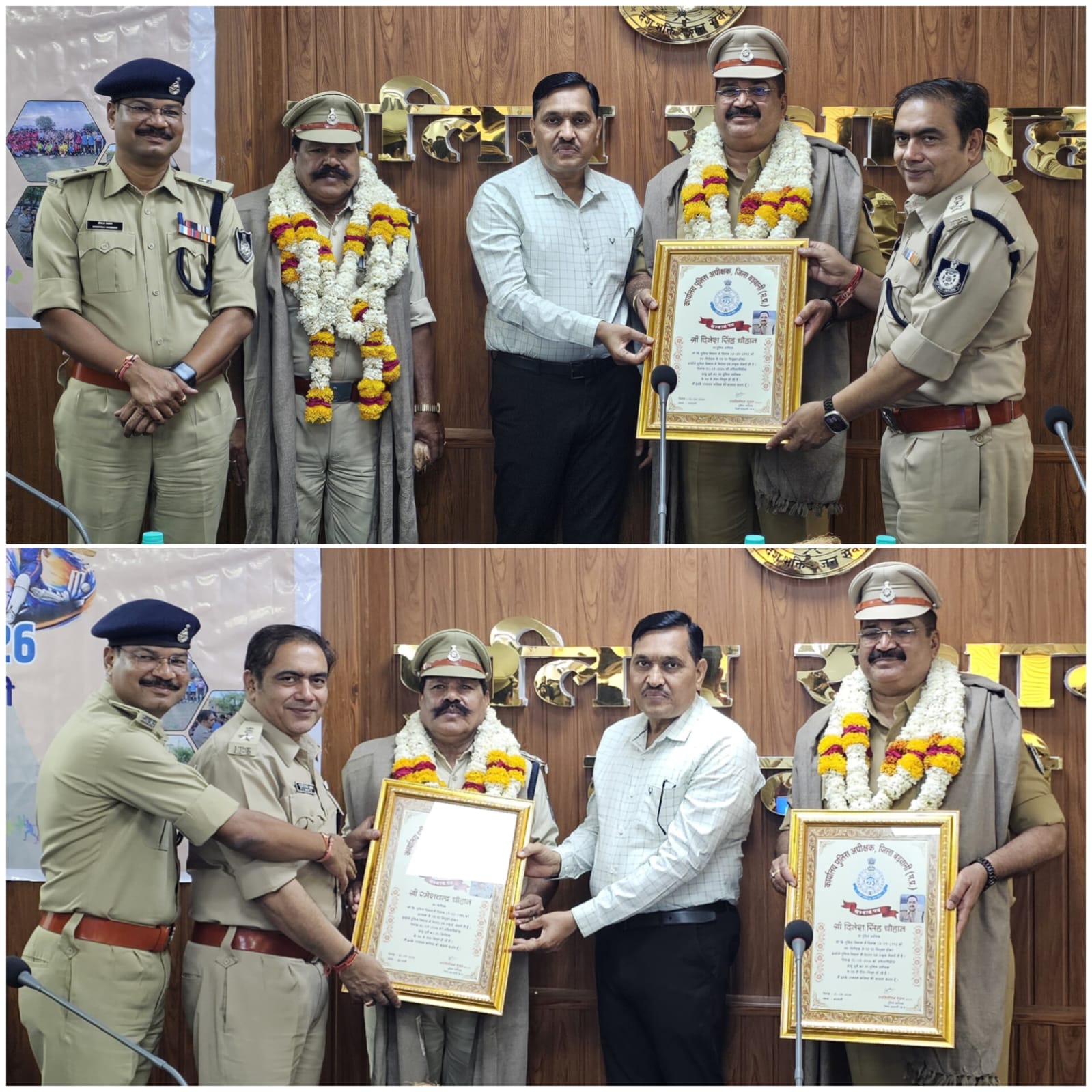 उप पुलिस अधीक्षक श्री दिनेश सिंह चौहान द्वारा दिनांक 18-09-1992 को उप निरीक्षक के पद पर नियुक्त होकर निरंतर सेवाएं प्रदान की गईं, वहीं उप निरीक्षक श्री रमेशचन्द्र चौहान द्वारा दिनांक 15-02-1986 को आरक्षक के पद पर नियुक्त होकर विभिन्न दायित्वों का कुशलतापूर्वक निर्वहन किया गया। दिनांक 31-03-2026 को अधिवार्षिकीय आयु पूर्ण कर दोनों अधिकारी सेवा-निवृत्त हुए। सेवा-निवृत्ति के अवसर पर पुलिस अधीक्षक बड़वानी श्री पद्मविलोचन शुक्ल द्वारा शाल-श्रीफल एवं स्मृति चिन्ह भेंट कर सम्मानित किया गया तथा उनके उज्ज्वल भविष्य एवं स्वस्थ जीवन की कामना की गई। इस अवसर पर तत्कालीन वरिष्ठ पुलिस अधीक्षक बड़वानी श्री जगदीश डावर पुलिस अधीक्षक कार्यालय पहुंचकर सेवा निवृत्त हुए दोनों पुलिस अधिकारियों को शाल श्रीफल भेंट कर सम्मानित किया व उनके उज्जवल भविष्य की कामना की तथा पुलिस अधीक्षक श्री पद्मविलोचन शुक्ल द्वारा उनके परिजनों से सौहार्दपूर्ण चर्चा की गई।