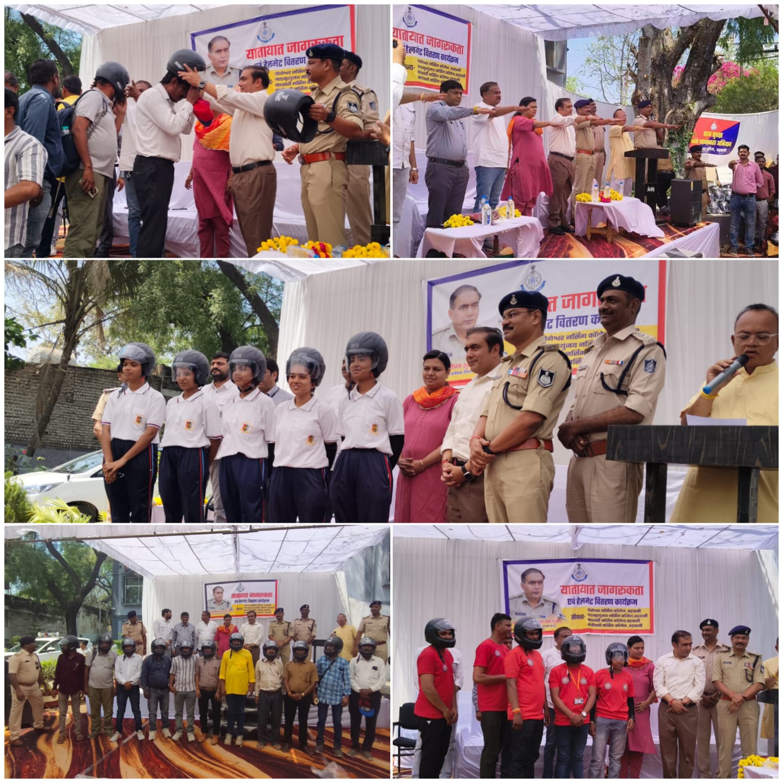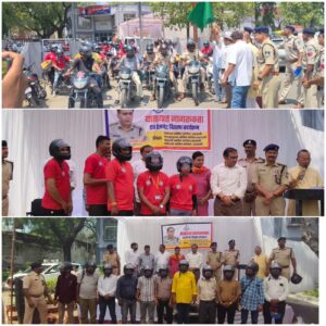 बड़वानी / जिले में पुलिस अधीक्षक श्री पद्मविलोचन शुक्ल द्वारा 01-04-2026 से सभी पुलिसकर्मियों को दो पहिया वाहन चलाते समय हेल्मेट धारण करने हेतु निर्देश जारी किए गए हैं। उक्त निर्देशों के पालन में पुलिस अधीक्षक के निर्देशन में एवं अतिरिक्त पुलिस अधीक्षक श्री धीरज बब्बर के मार्गदर्शन में थाना प्रभारी बड़वानी निरीक्षक श्री बलजीत सिंह बिसेन के नेतृत्व में यातायात जागरूकता कार्यक्रम आयोजित किया गया, जिसमें नगर रक्षा समिति, NCC, NSS, आपदा मित्र, नगर पालिका स्वच्छता मित्र एवं पत्रकार बंधुओं को हेल्मेट वितरित किए गए। कार्यक्रम में योगेश्वर शिक्षा महाविद्यालय, माँ रेवा हॉस्पिटल, महामृत्युंजय, सरस्वती नर्सिंग कॉलेज, संजीवनी हॉस्पिटल एवं साई बाबा हॉस्पिटल द्वारा सहयोग प्रदान किया गया। उक्त संस्थाओं के सहयोग से थाना बड़वानी पुलिस ने कुल 202 हेल्मेट वितरित किए। कार्यक्रम में पुलिस अधीक्षक श्री पद्मविलोचन शुक्ल एवं अतिरिक्त पुलिस अधीक्षक श्री धीरज बब्बर, उप पुलिस अधीक्षक महेश सुन्नैया द्वारा निःशुल्क हेल्मेट वितरित किए गए तथा तत्पश्चात उपस्थित सभी लोगों को हेल्मेट धारण करने की शपथ दिलाई गई। इसके उपरांत पुलिस अधीक्षक द्वारा हरी झंडी दिखाकर जागरूकता रैली को रवाना किया गया, जो थाना कोतवाली से कारंजा चौराहा तक निकाली गई।