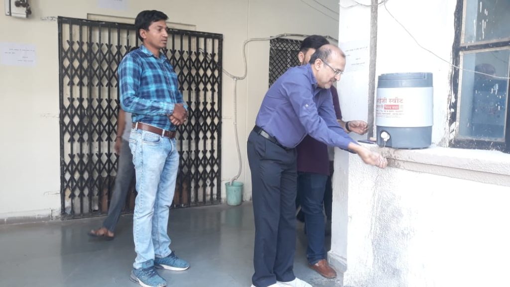 बैठक में प्रवेश करने के पूर्व प्रतिभागियो ने साबुन से धोये अपने हाथ