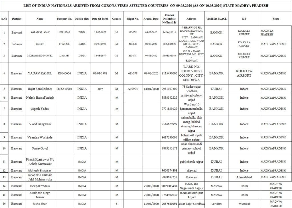 बडवानी ज़िला प्रशासन एंव स्वास्थ्य विभाग को दर्शित सूची के लोगों पर निगरानी की है सख्त जरूरत !