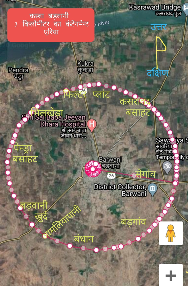 बड़वानी  /बड़वानी नगर के सुतार गली में कोरोना पॉजिटिव एक केस मिलने के पश्चात जिला प्रशासन ने प्रभावित के आवास को जहां ईपी सेंटर घोषित कर उससे लगे दो सौ मीटर के रेडियस क्षेत्र को  पूरी तरह से प्रतिबंधित कर दिया है। वहीं प्रभावित के घर से 3 किलोमीटर के रेडियस के क्षेत्र को कंटेनमेंट  क्षेत्र एवं 5 किलोमीटर क्षेत्र को बफर झोन घोषित कर लोगों को घरों में ही रहने के निर्देश दिए हैं। जिससे घर-घर जाने वाले स्वास्थ्य विभाग का अमला सर्वे कर लोगों की स्क्रीनिंग अच्छी तरह से कर सके ।