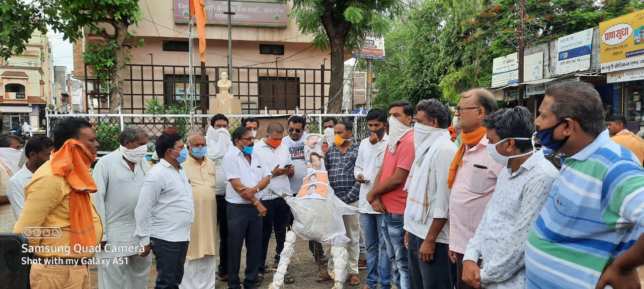 खेतिया (सुभाष सोनेस)भाजपा के प्रदेश अध्यक्ष विष्णु दत्त शर्मा ,जिला अध्यक्ष ओम सोनी के निर्देशानुसार भाजपा मंडल खेतिया में मप्र के पूर्व मुख्यमंत्री कमलनाथ का पुतला दहन किया गया , क्योंकि केंद्रीय वाणिज्य मंत्री रहते कमलनाथ ने चीन के माल के आयात शुल्क पर भारी कटौती करके भारतीय कुटीर, लघुउद्योगों और व्यापार को चौपट करने का अपराध श्री कमलनाथ ने किया है ।पुतला दहन कार्यक्रम में मंडल के वरिष्ठ नेता पंडित नाना निकुम, श्याम हरसोला,हिरालाल संचेती, मंडल अध्यक्ष कमलेश राजपूत,सचिन चौहान ,मदन बाबा जैन,दशरथ आप्पा निकुम, सूर्यकांत येसीकर, पार्षद प्रकाश महाले, पवन शर्मा, रामचंद्र सोनिस, पार्षद सुरेश चोहान ,सचिन पटेल, युवा नेता रवि पटेल,कन्हैैया माली, हेमेन्द्र सोनी, दिपक सोनिस, गोटू जैन, एवं पंडित माली,अमरूभाई,आशिष संचेती, अतुल निकुम, पीयूष सोनी,विशाल परदेशी,विकास निकुम,ईश्वर कोली,शुभम पाटिल, विनायक राजपूत, योगेश परदेशीआदि युवा व वरिष्ठ कार्यकर्तागण उपस्थित रहे।
