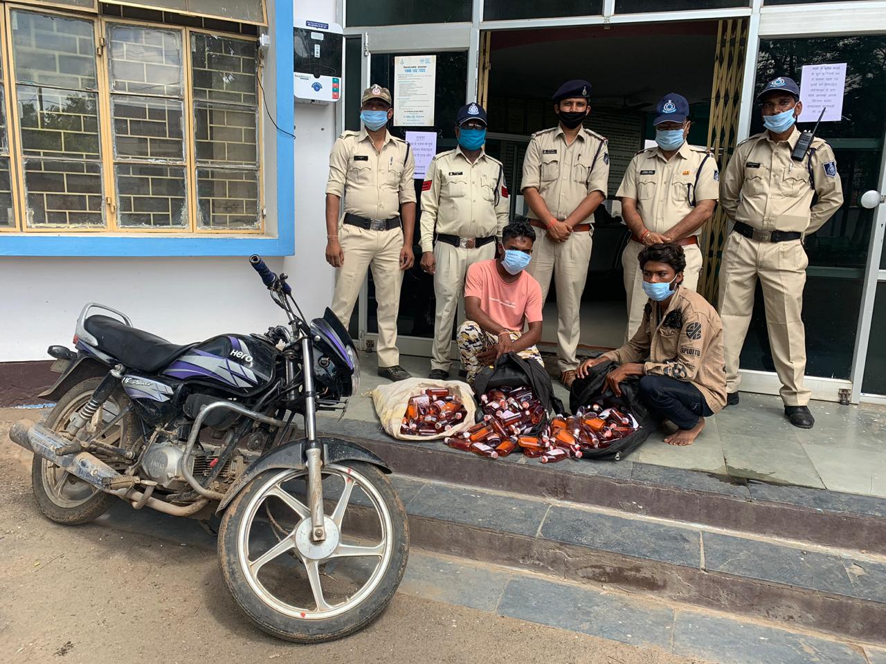 पुलिस अधीक्षक बडवानी के निर्देशन एंव अति. पुलिस अधीक्षक श्रीमति सुनिता रावत, के मार्गदर्शन में उनि विजय रावत, सनि आर.के लोंवशी, आर 229 जगजोध, अंतरसिंह, बलविर, गेंदालाल की टीम गठित कर टीम को अवैध शराब जुआ, सट्टा के खिलाफ कार्यवाही के निर्देश दिये जिस पर उक्त टीम ने मुखबिर की सुचना मिली की दो व्यक्ति अपनी मोटर सायकल पर गणपुर चौकड़ी तरफ से शराब बेचने हेतु पाटी की ओर जाने वाले है सुचना पर फिल्टर प्लाट के पास कसरावद बसाहट में घेराबंदी कर मुखबिर के बताये हुलिये के अनुसार एक मोटर सायकल पर दो व्यक्ति आते दिखे जिसे घेराबंदी कर पकड़ा एव आरोपी 1. सुरेश पिता गंगाराम तिगले जाति हरिजन उम्र 26 वर्ष निवासी बोकराटा एंव 2. अशोक उर्फ आकाश पिता अजंय सोलकी जाति हरिजन उम्र 27 वर्ष