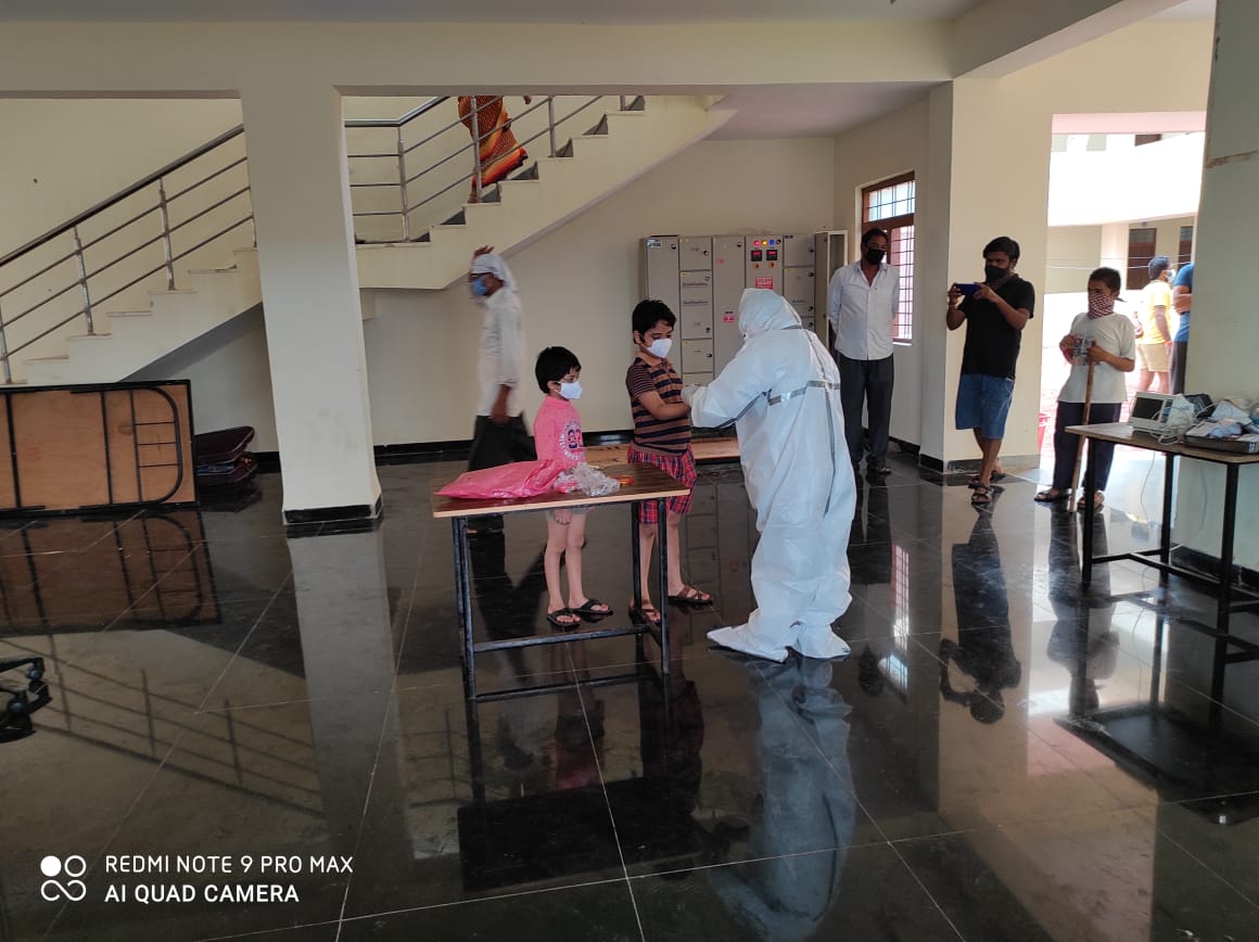 बड़वानी 03 अगस्त / जिले के सबसे बड़े कोविड केयर सेंटर जामली में भर्ती 62 कोरोना वायरस पाॅजिटिव लोगो को संस्था में कार्यरत एएनएम ने पीपीई किट पहनकर राखी पर्व पर उनकी कलाईयों पर रक्षा सूत्र ( राखी ) बांधकर बहन का फर्ज निभाया है। इस दौरान एएनएम ने कोविड केयर सेंटर में भर्ती महिलाओं एवं बच्चों की कलाईयों पर भी रक्षा सूत्र बांधकर सभी को यकिन दिलाया कि उन्हें स्वस्थ्य करने में वे लोग कोई कोर कसर नहीं छोड़ेगी ।