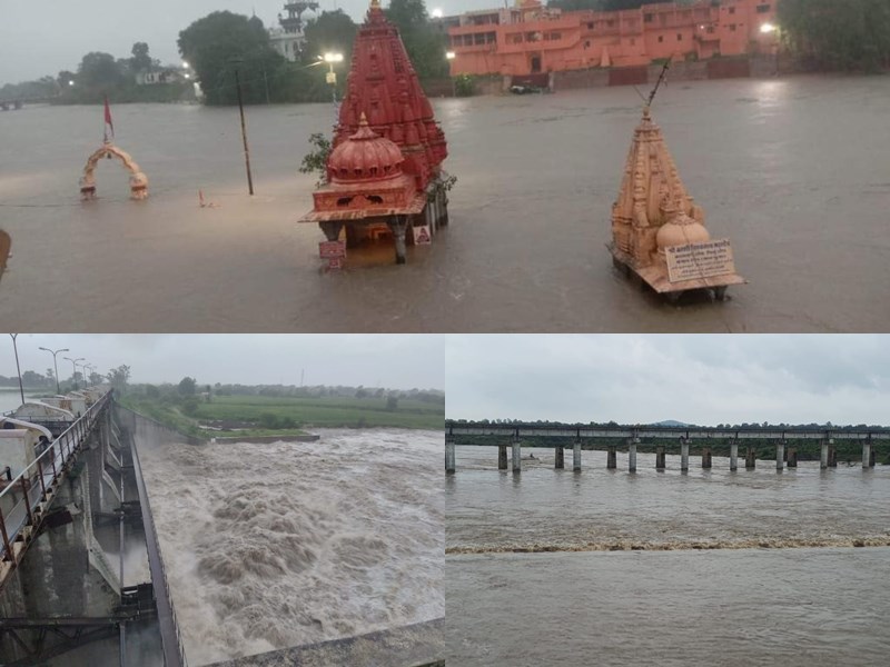 उज्जैन शहर और आसपास के इलाकों शुक्रवार रात से बारिश जारी है। इससे निचले इलाकों में पानी भर गया है। शिप्रा नदी के रामघाट पर कई मंदिर भी डूब गए हैं।